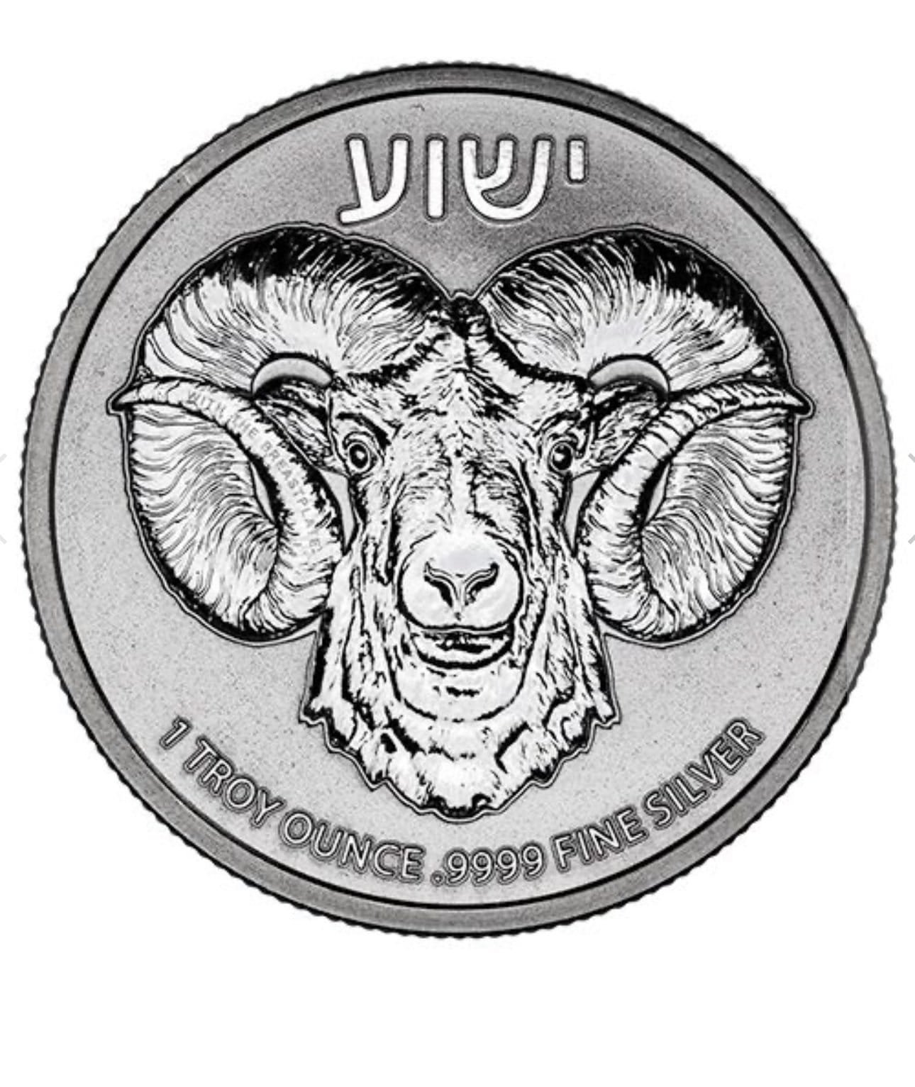The ram symbolizes the Lamb or Son of God, as indicated by the Hebrew lettering “ישוע” above the image, which translates to Yeshua (Jesus).